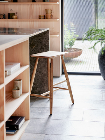 High stool in oiled oak. The stylish and streamlined design perfectly matches the Scandinavian interior with a relaxed vibe. The stool can also be used as a bar stool and is made from the most beautiful oak. For indoor use.