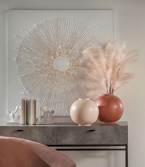 This round vase features a pastel tone, perfect for adding a soft and fashionable touch to your home decor. Elegant and versatile, it can be used alone or paired with the larger version in intense pastel pink to create a harmonious and modern composition. A decorative piece that combines charm and style in any space.