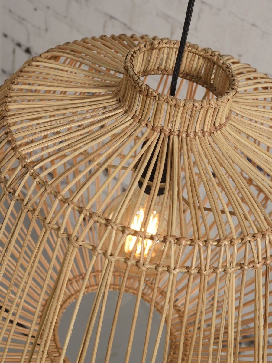 Inspired by the world’s fourth largest island, known for its unique biodiversity, the "MADAGASCAR" hanging lamp combines traditional craftsmanship and elegant design. Its hand-woven bamboo shade softly filters the light, creating a delicate play of shadows and a luminosity that provides a warm and serene atmosphere. Ideal for any space, whether in the living room or office, this lamp adds a natural and sophisticated touch, enhancing the beauty of organic materials and the authenticity of handcrafted work.