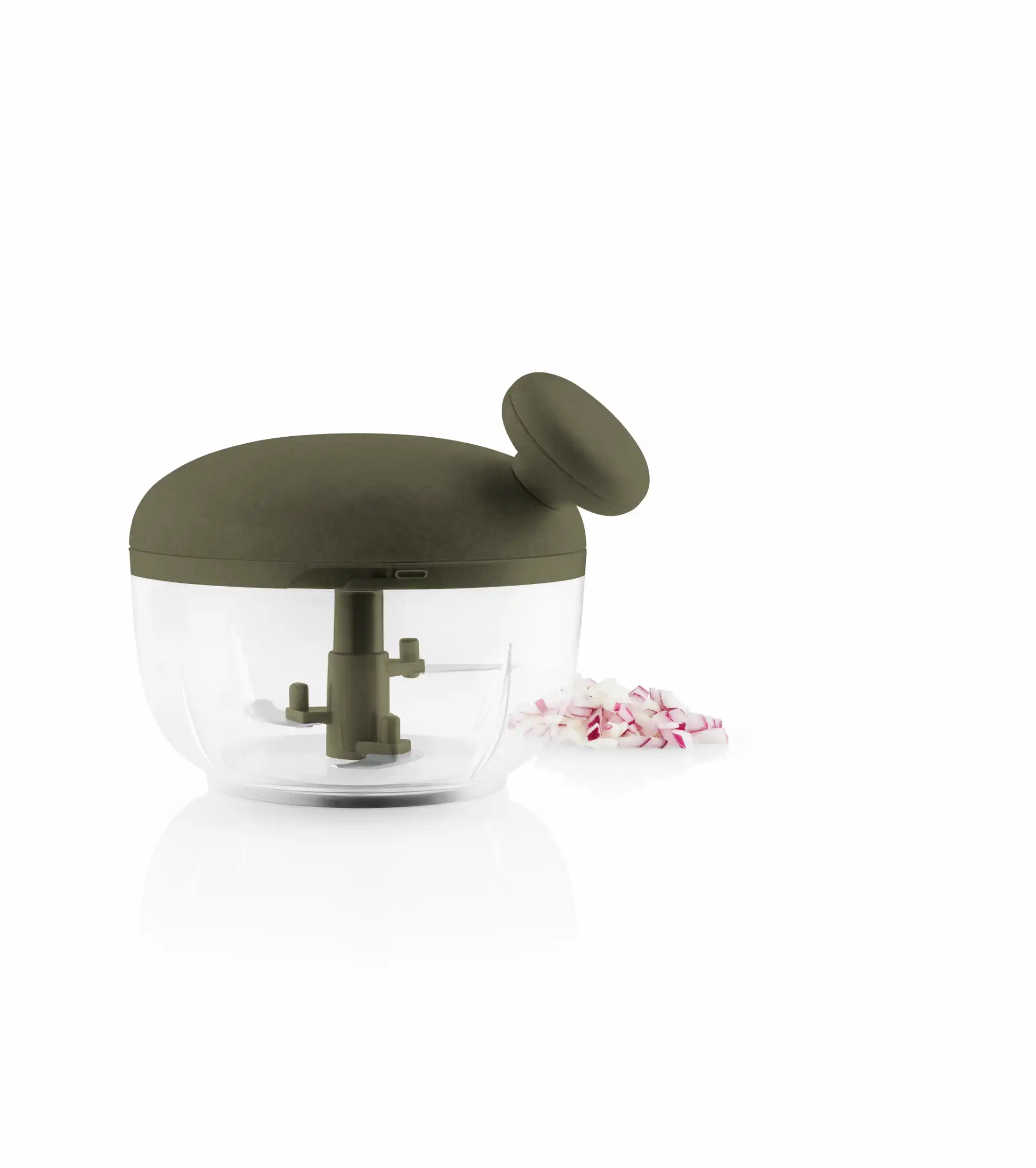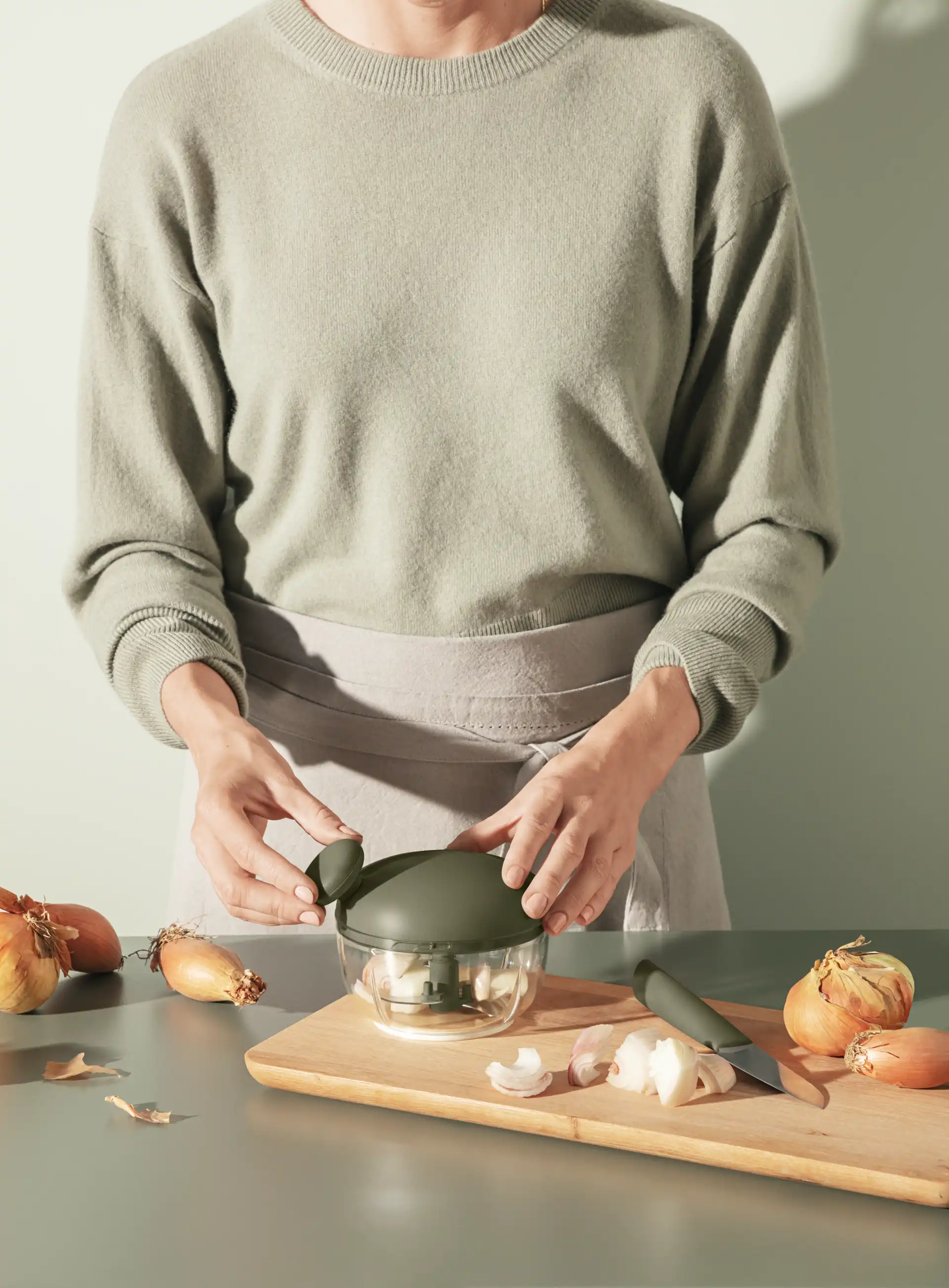 The "GREEN TOOL" chopper is quick, efficient, and practical. Simply pull the string and you'll have your ingredients chopped. It also comes with an attachment for whisking cream, egg whites, and more.