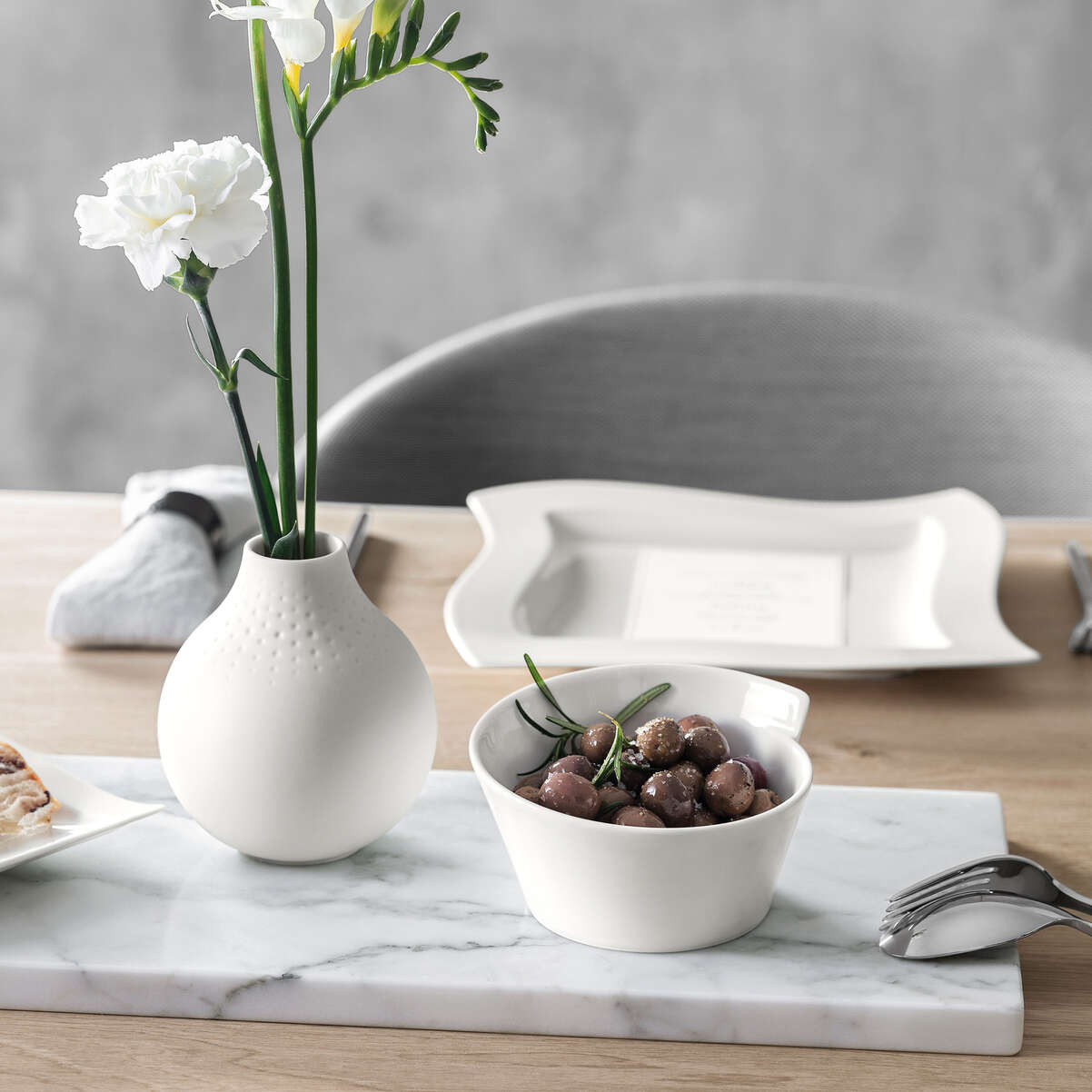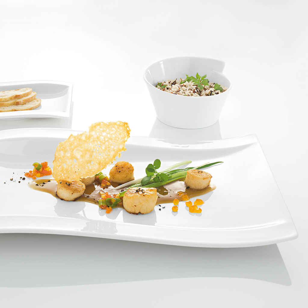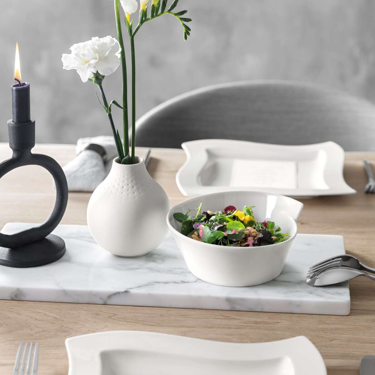 The "NEWWAVE" bowl combines sophistication and versatility, making it ideal for dishes like rice, soups, starters, and desserts. Its modern design, featuring curved lines and a rounded shape, transforms any table into a visual highlight.