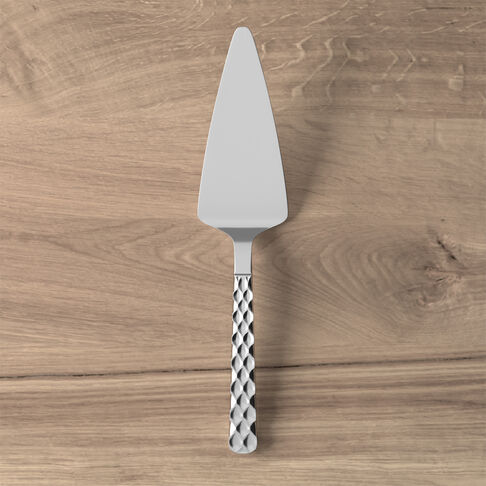 The "BOSTON" cake knife is an elegant piece with a diamond design, ideal for serving cakes and tarts. It allows the slices to glide easily along the knife, making the cutting and serving process effortless. The handle comfortably fits your hand, providing a comfortable and precise user experience. A sophisticated addition to your table, combining design and practicality.