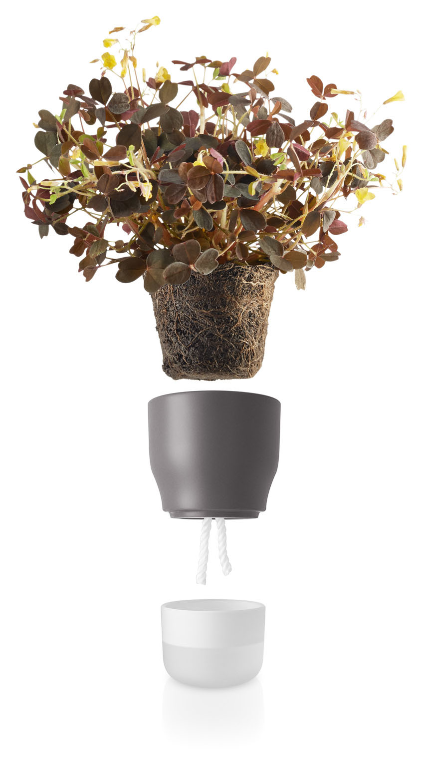Thanks to its self watering system, this vase allows the plant to draw up just the water it needs, from a water reservoir in the bottom pot.