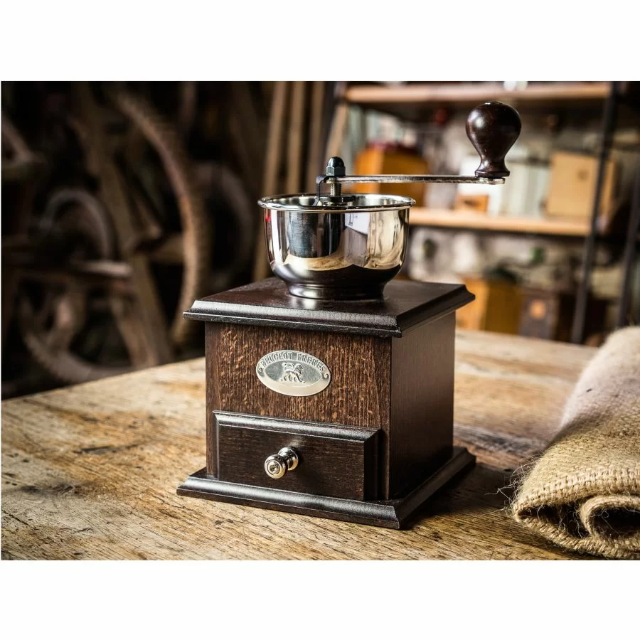Coffee grinders have been at the heart of Peugeot Saveurs since 1840. Once you try it for the first time, you'll discover that freshly ground coffee releases a fragrance and an extraordinary aroma that simply cannot be found in pre-ground coffee. A nod to the coffee grinders from our grandparents' time, this one has a square shape, a kind of funnel, and a handle; the ground coffee is collected in the drawer at the bottom. Control the grind (finer or coarser) through the small wheel located under the handle. Made of beech wood with a walnut finish and featuring Peugeot Saveurs' exclusive steel grinding mechanism, this grinder will provide you with extraordinary sensory experiences and bring authentic refinement to your kitchen.