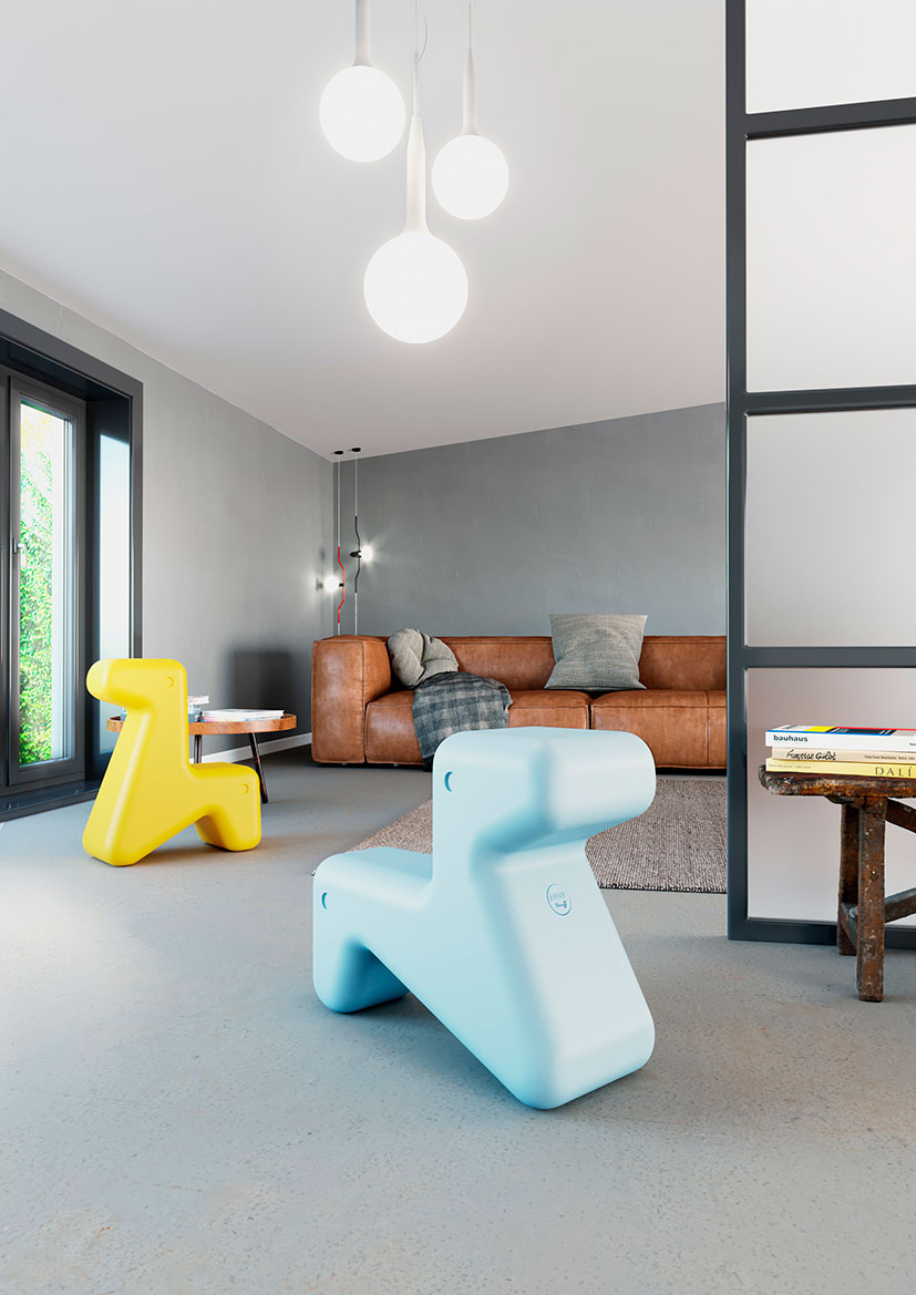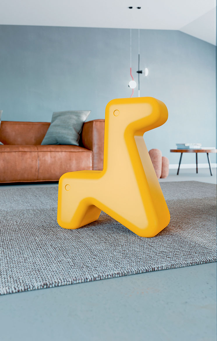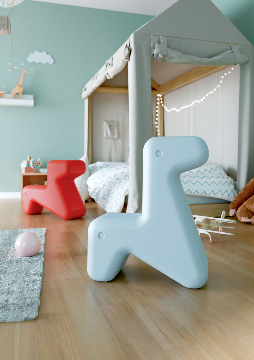 The "DORAFF" child seat is simple and a great toy for children. This one, depending on the chosen position, can resemble a giraffe or a dog. You can also use it just as a decorative element.