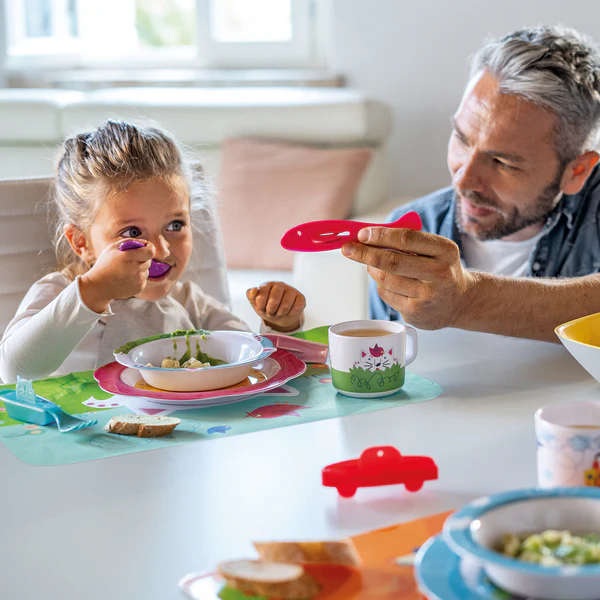 El conjunto de 3 cubiertos para niños “PLAYPARK” convierte la hora de la comida en una verdadera diversión. Con formas divertidas de avión y barco para los tenedores, cuchillos y cucharas, estimula la imaginación de los más pequeños mientras se alimentan. La seguridad siempre es la prioridad, por lo que los cubiertos están diseñados con materiales y formas seguras para los niños, proporcionando una experiencia de comida alegre y tranquila. Perfecto para hacer que cada comida sea más divertida y motivadora para los pequeños exploradores.
