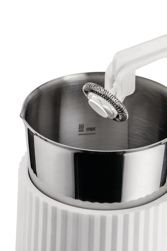El espumador de leche "PLISSÉ" es simple y práctico. Con hasta cuatro funcionalidades, puedes calentar, calentar con espuma, enfriar con espuma o hacer chocolate caliente. Prepara tu leche fácil, rápida y eficientemente.