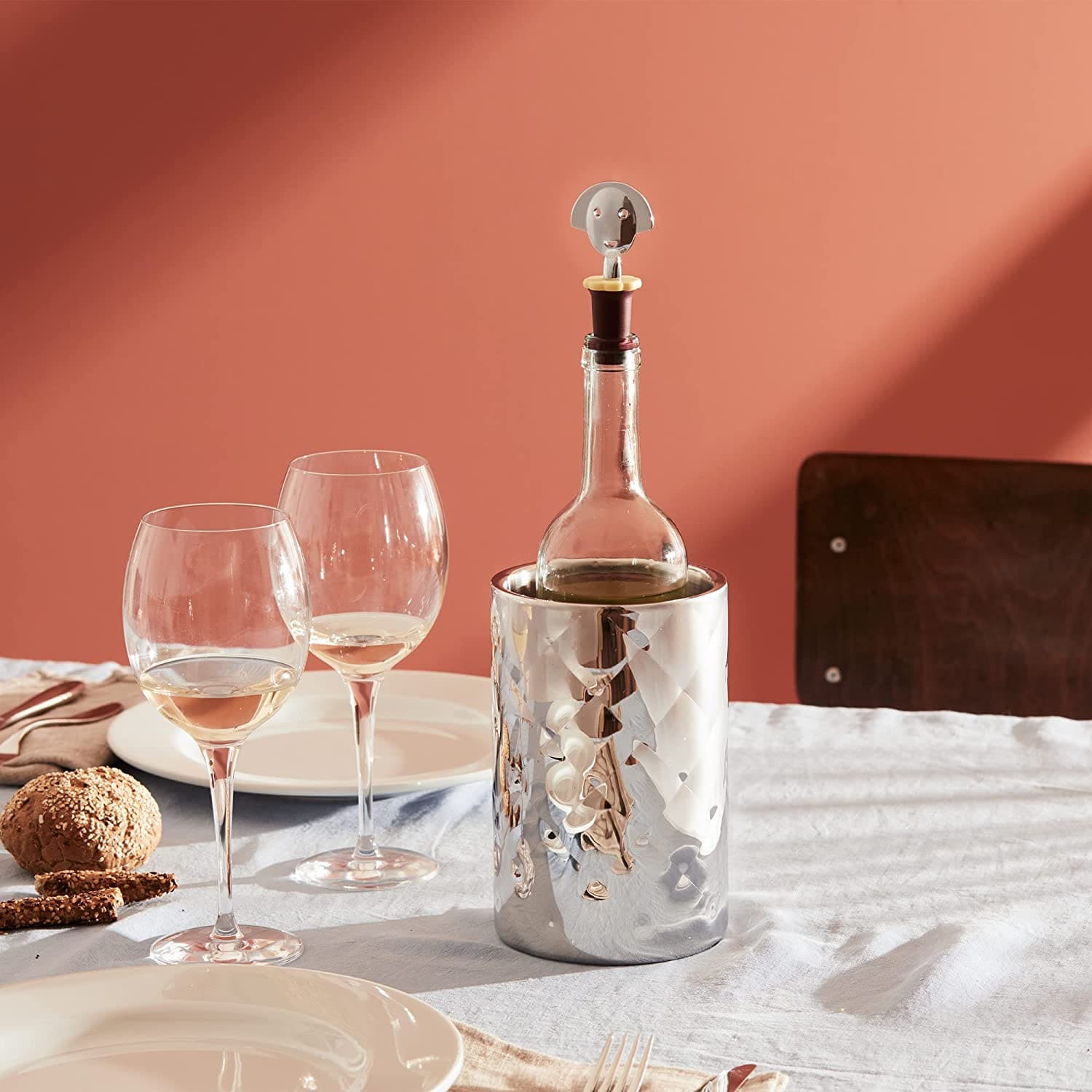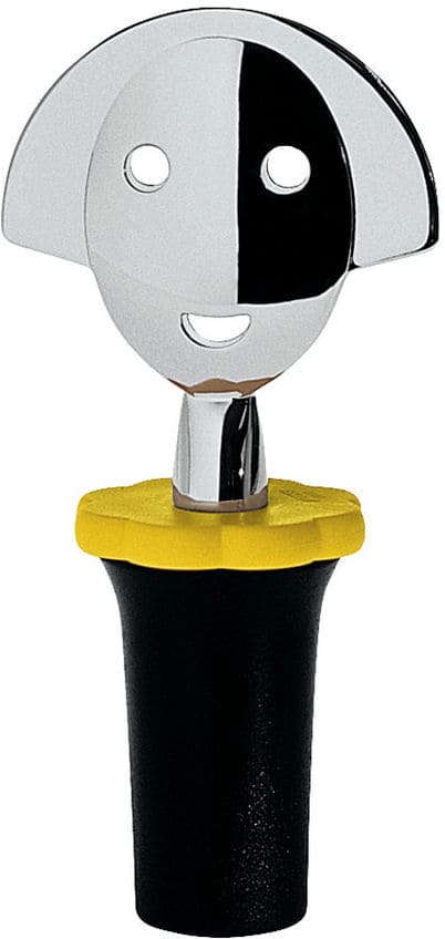 "ANNA STOP 2" encaja perfectamente en cualquier botella de vino, manteniendo su vino fresco y asegurando que siempre tenga una copa de vino a su disposición. Fabricada por ALESSI, complementa al famoso sacacorchos "ANNA G.". Este tapón alegre presenta un rostro sonriente en la parte superior de cualquier botella de vino, añadiendo un toque de diversión a su bodega y convirtiéndolo en un encantador regalo para cualquier ocasión. Está diseñada para adaptarse a todos los tamaños de botellas de vino, y sus colores y su agradable forma añaden un toque de personalidad.