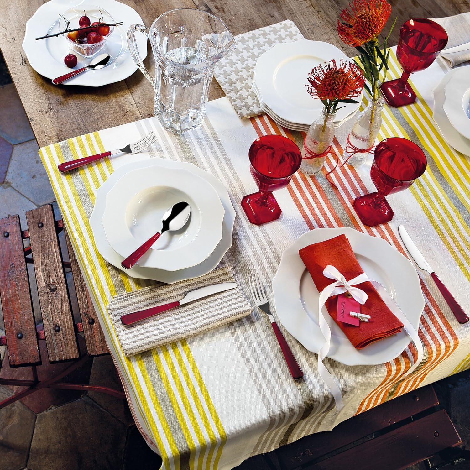 Este conjunto ofrece un diseño moderno y funcionalidad de alta calidad. Cada cubierto está fabricado en acero inoxidable, lo que garantiza durabilidad y resistencia. Su mango, con elegantes detalles, añade un toque sofisticado a cualquier mesa.