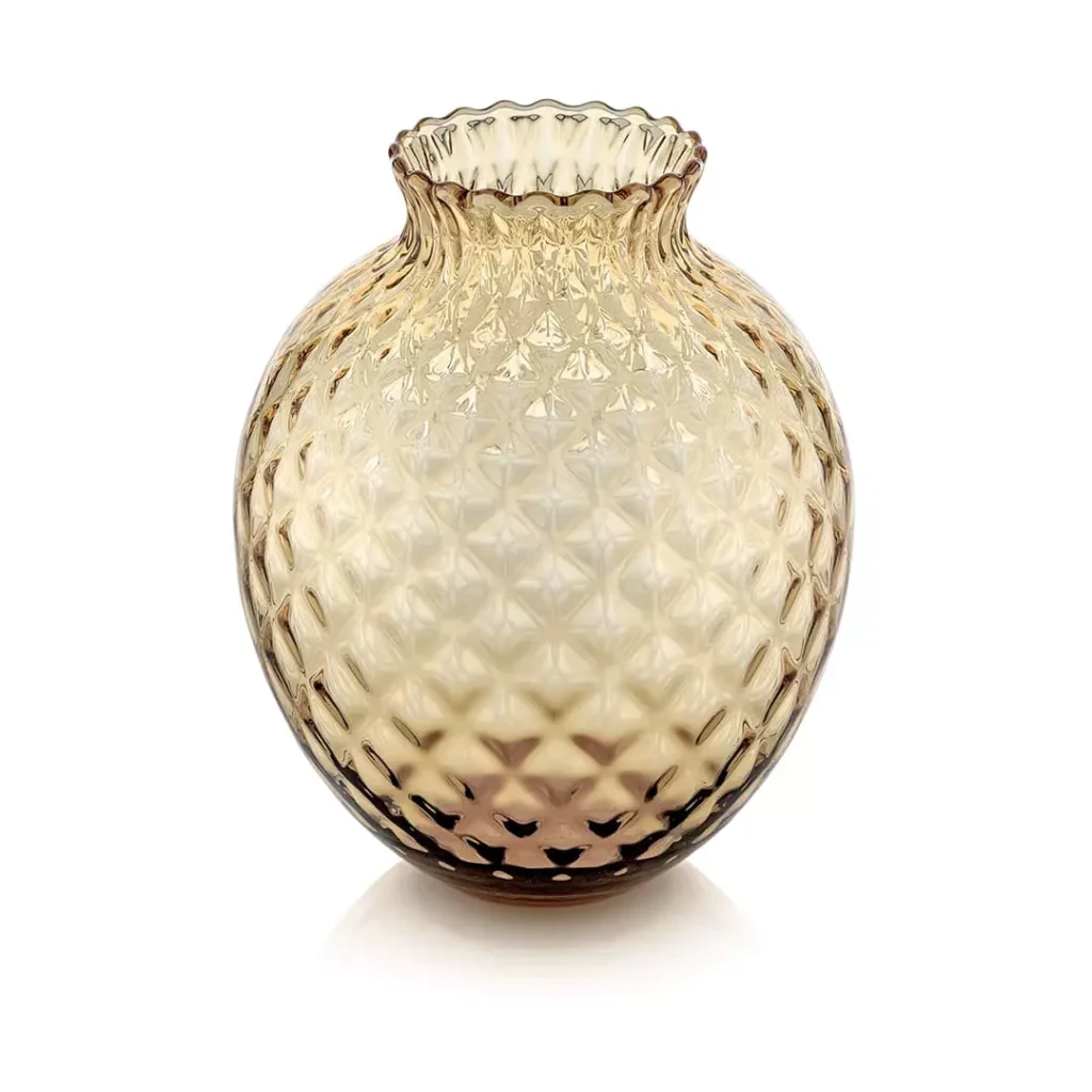 Infiore apresenta jarras deslumbrantes que combinam elegância e funcionalidade. Feitas com vidro transparente e âmbar estão disponíveis em três tamanhos diferentes. Além de servirem como jarras, também podem ser utilizadas como peças decorativas, permitindo combinações criativas de formas e cores. Com um artesania refinada e um design requintado estas jarras transcendem a sua função original, enriquecendo qualquer ambiente com o seu charme atemporal e versatilidade decorativa.