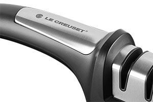 Cuide das suas facas com o afiador de facas de Le Creuset. As esferas de moagem revestidas em diamante afiam as facas sem qualquer esforço. Escolha entre duas posições de amolagem – grossa ou fina.
